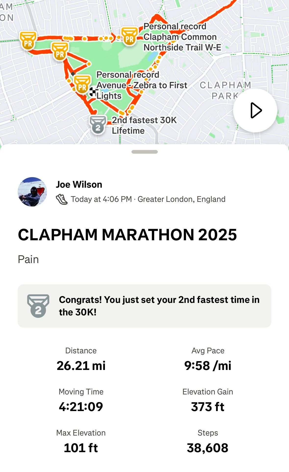 2 nights ago, I ran my first marathon. No training. No preparation. In fact I’ve been sleeping like shit recently. 4h21 moving time. By far the hardest thing I’ve ever done.